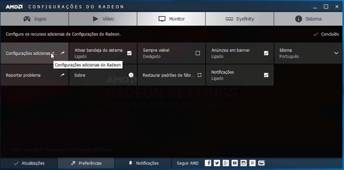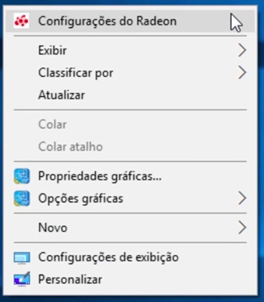 1- Clique com o botão direito do mouse em qualquer lugar na área de trabalho e escolha a Opção Configurações do Radeon.