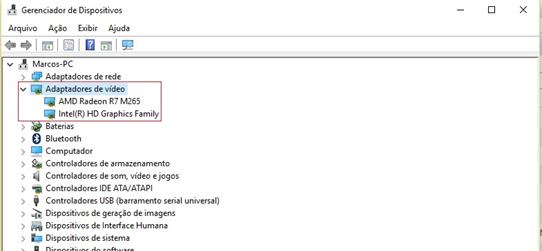 3 - Assim que expandir a aba, verifique quais os modelos de placa de vídeo sua máquina possui.