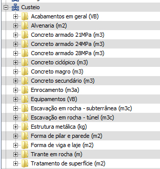 Como exemplo, para os quantitativos de Terra e Rocha, foram utilizadas as seguintes classificações de filtro nos itens de Custeio: