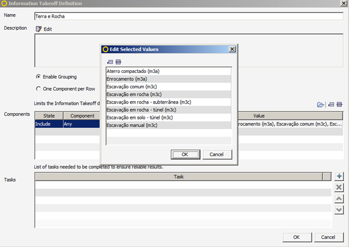 Foram criados seis Information Takeoffs, todos baseados nas classificações de Custeio e Locais: