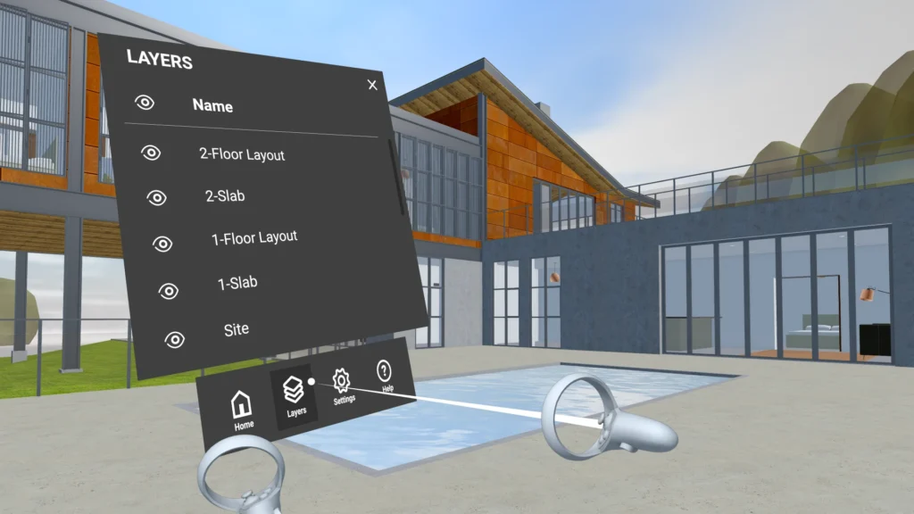 Por exemplo, o Vectorworks Odyssey , um aplicativo de visualização de realidade virtual criado para os headsets Meta Quest 2, ajuda você e seus clientes a experimentar modelos imersivos com uma visão panorâmica.
