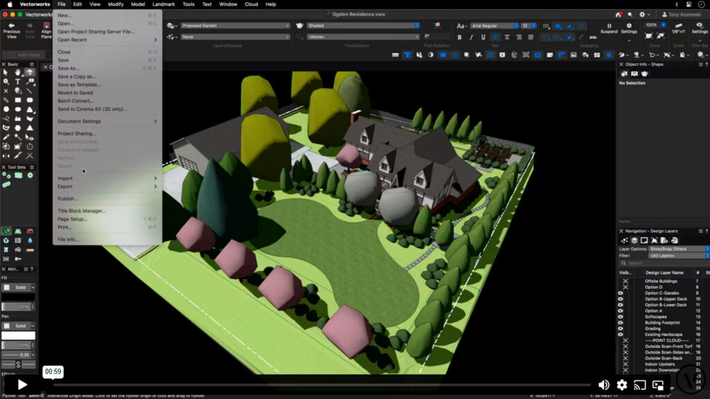 Essa flexibilidade entre as diversas disciplinas de projeto é um dos pontos fortes do software de design Vectorworks, oferecendo a liberdade de modelar o sistema de rigging de um teatro no Vectorworks Spotlight , projetar o plano de nivelamento de um parque no Vectorworks Landmark ou desenvolver o modelo BIM de um edifício comercial no Vectorworks Architect — com todos os projetos visualizáveis no Vectorworks Odyssey.