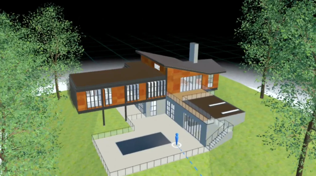 - Use um headset de realidade virtual acessível, como o Meta Quest, com ferramentas como o Vectorworks Odyssey para hospedar visitas virtuais imersivas que dão a sensação de estar em um local físico, como se estivesse visitando espaços ainda não construídos.
